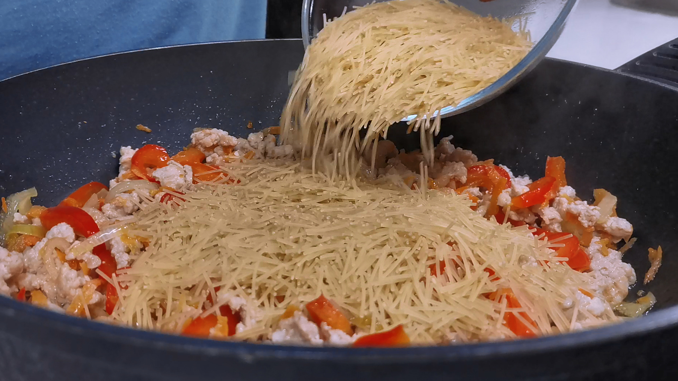 Самая дешевая вермишель, куриный фарш и немного овощей! Ужин ПРОСТО, ВКУСНО и НЕДОРОГО! .mp4