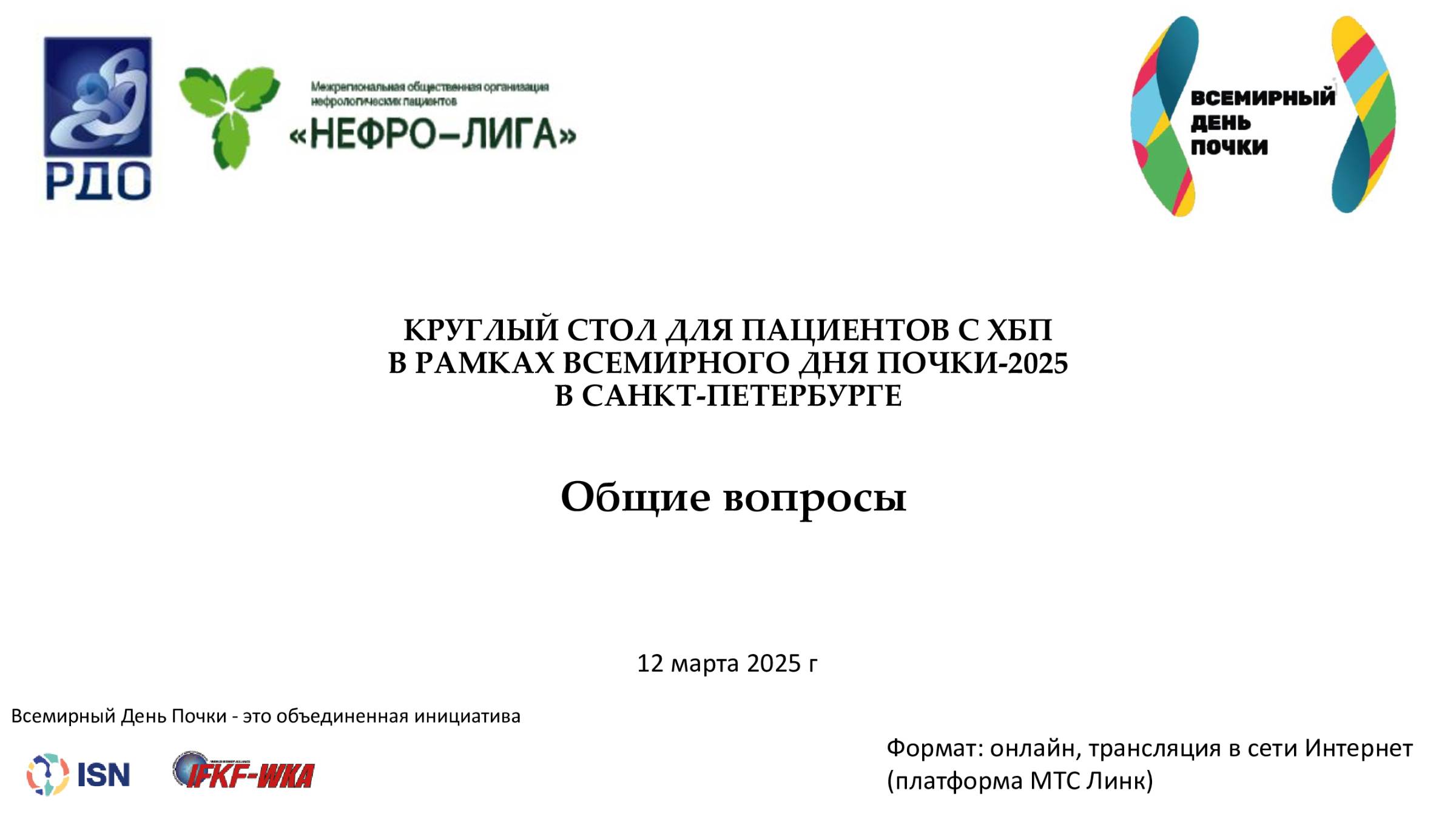 Общие вопросы. Круглый стол для пациентов с ХБП 2025