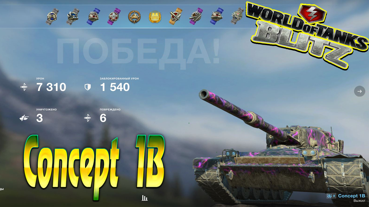 Concept 1B Wot Blitz 7.3К Урона 3 Фрага World of Tanks Blitz Replays vovaorsha.