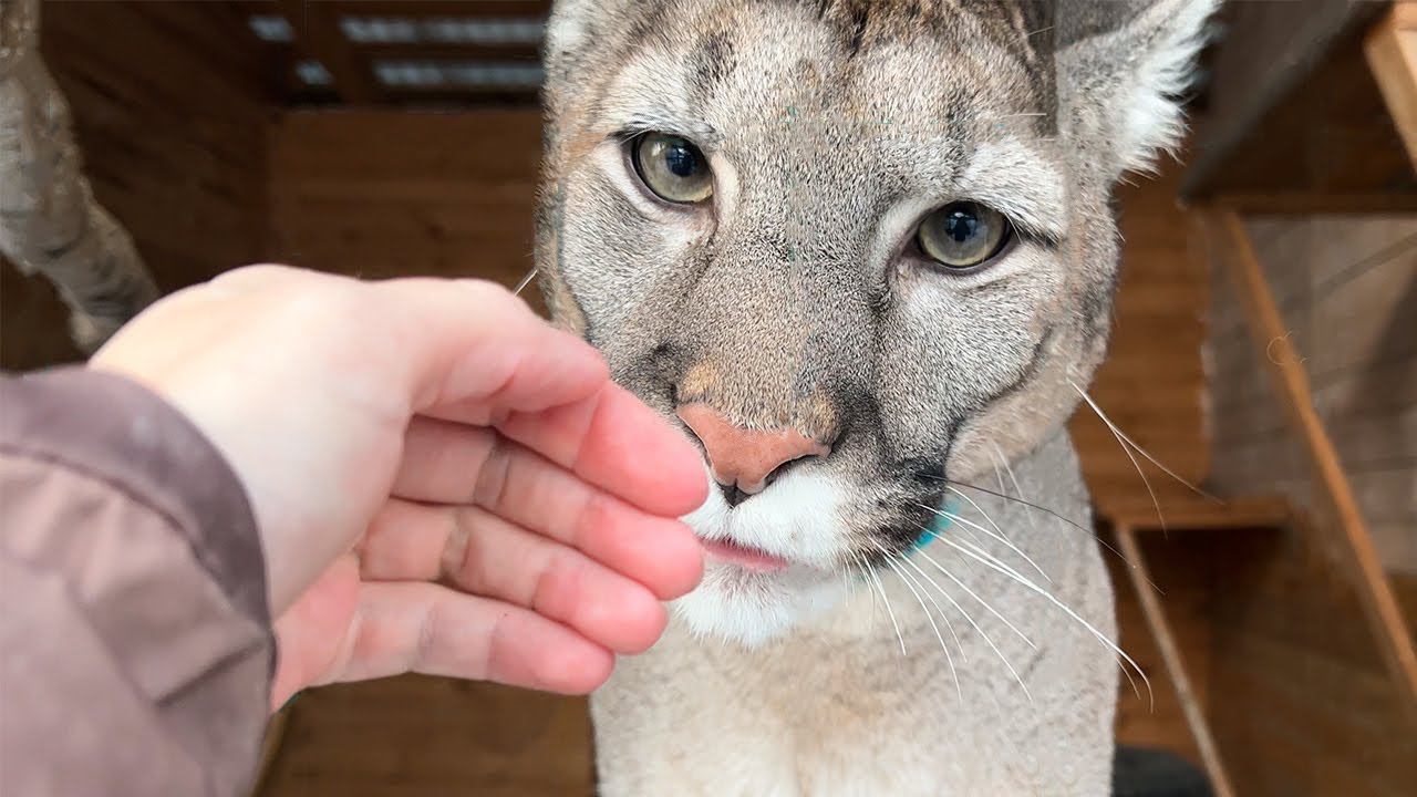 ПОГЛАДИЛА ПУМУ Налу - ПУМА В ШОКЕ! / Барханные кошки лакомятся саранчой