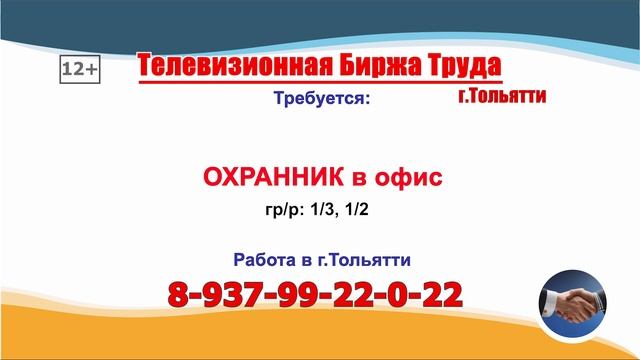 ТЕЛЕВИЗИОННАЯ БИРЖА ТРУДА – это слайдовая программа по трудоустройству, где голосом озвучивается ВАКАНСИЯ и ТЕЛЕФОН прямого работодателя, выходит на телеканале ГУБЕРНИЯ в Самаре и Самарской области