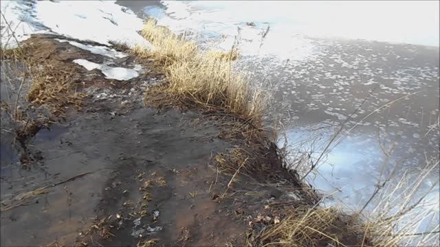 снег тает, водопад