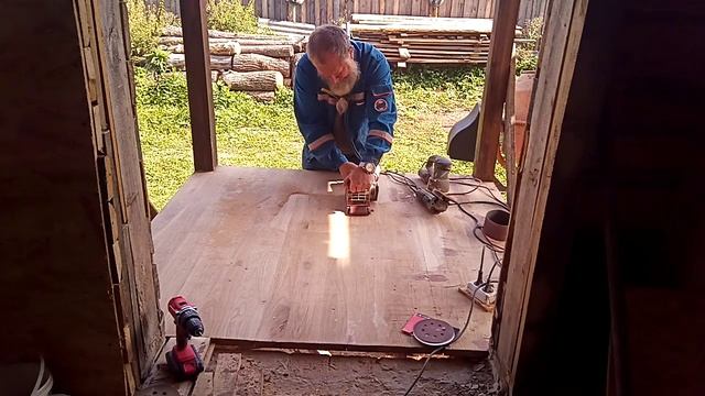 Дубовая площадка на новом крыльце. Шлифую тремя шлифмашинками, своими руками.
