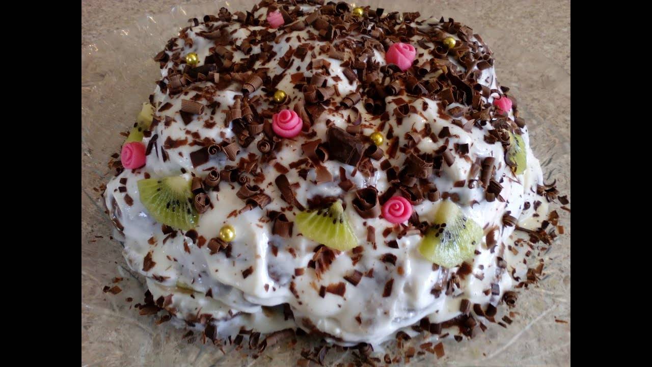 Торт без выпечки из пряников и зефира готовится очень быстро! Торт из пряников в сметанном креме получается вкусным и пропитанным. Попробуйте приготовить быстрый торт без выпечки из пряников и зефира- результат превзойдет Ваши ожидания! Нам понадобится: пряники -500 гр зефир - 200 гр киви- 2 шт сметана - 500 гр сахар- 3 -4 ст.л. шоколад для украшения