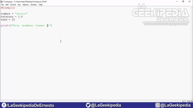 Curso de programación Python 3 desde cero - En esta entrega del curso de programación Python desde cero, aprenderás a utilizar e implementar las f-Strings, las cuales nos permiten concatenar de manera eficiente y rápida Strings con Strings y valores numéricos con Strings. Además de agregar expresiones dentro de nuestras cadenas de caracteres. ¡¡Ayúdame a seguir creciendo, te invito a suscribirte!! La Geekipedia de Ernesto ➞ Facebook https://www.facebook.com/LaGeekipediaDeErnesto/ ➞ Instagram https://www.instagram.com/lageekipedia/ ➞ Twitter https://twitter.com/LaGeekipedia ═════════════════════════════════════════ ¿Te gustaría que este contenido siga siendo gratuito?, puedes apoyar al canal de las siguientes maneras: ➞ Donaciones: https://www.paypal.me/LaGeekipedia ➞ Desactivando Adblock y Adblock Plus en YouTube. ➞ Compartiendo los vídeos del canal en foros y redes sociales. Cualquier opción es de gran ayuda. ¡Muchas gracias! ═════════════════════════════════════════ • Descarga del ejercicio: https://mega.nz/file/AAJ22LiS#J-Ov1XSsVrxvSp63cN8YsHkcua1ZBdTbrd6oQoKavco • Curso Android desde cero: https://bit.ly/2F89c3e • Curso Java desde cero: https://bit.ly/2XSs2V5