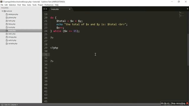 In this tutorial we discuss about following loops in PHP: 1.While Loop 2.Do...while Loop 3.For Loop 4.For Each Loop