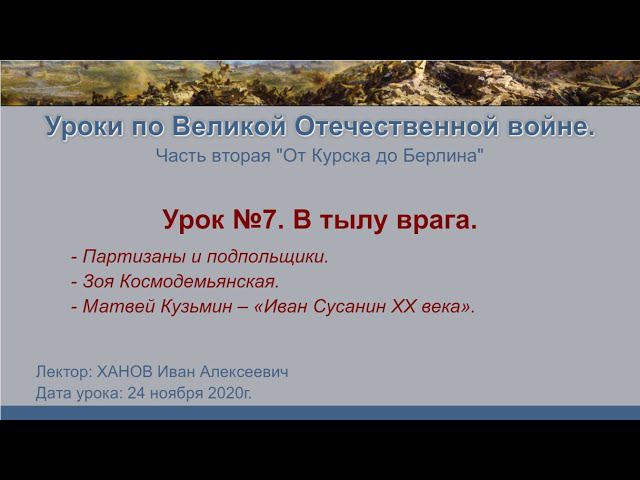 Уроки по Великой Отечественной войне. Часть вторая - "От Курска до Берлина." Урок №7 - В тылу врага. - Партизаны и подпольщики - Зоя Космодемьянская - Матвей Кузьмин – «Иван Сусанин ХХ века» ВПК "Севастополь" - http://vpk-sevastopol.ru/ Конкурсы и Чемпионаты - http://vpk-sevastopol.ru/konkurs/
