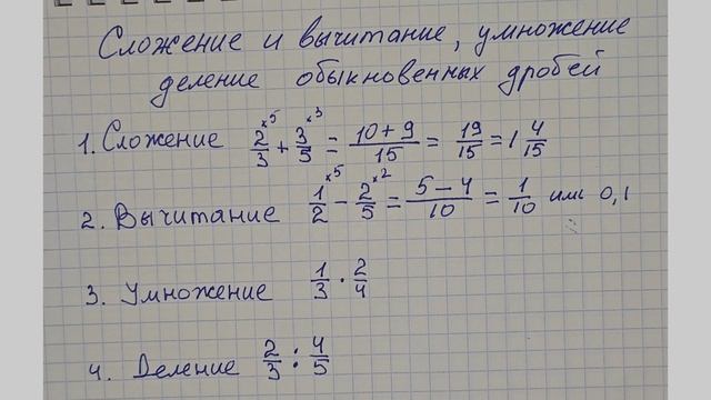 Четыре основных математических действий с обыкновенными дробями. Математика пятый и шестой класс
