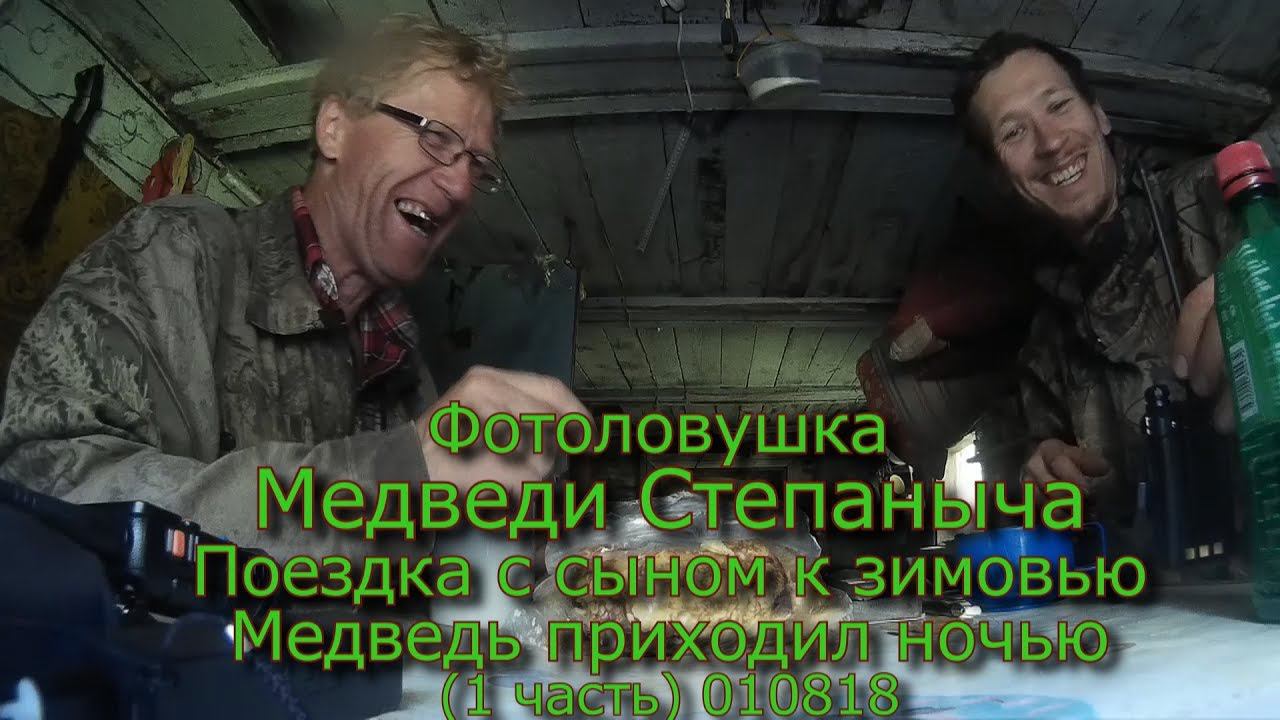 Фотоловушка Медведи Степаныча Поездка с сыном к зимовью Медведь приходил ночью (1 часть)
