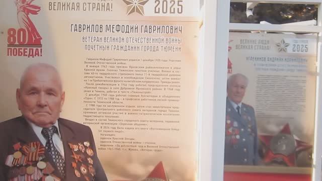 Между ж/д-вокзалом и сквером сибирских кошек. Стенды с информацией о тюменских ветеранах. Этим людям около 100 лет. В Тюмени живут до 105.