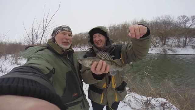 Зимний спиннинг. Сашин судак и окуни. р. Сал. по снегу. от Юрия Философа