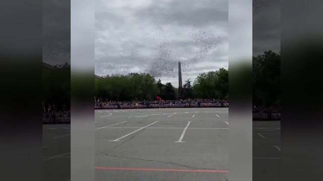 В Волгограде в конце парада с самолёта сбросили копии листовок времён Великой Отечественной войны. На них изображены советские солдаты и размещены лозунги «Беспощадно разгромим врага!» и «Нет такой силы, которая поработила бы нас».