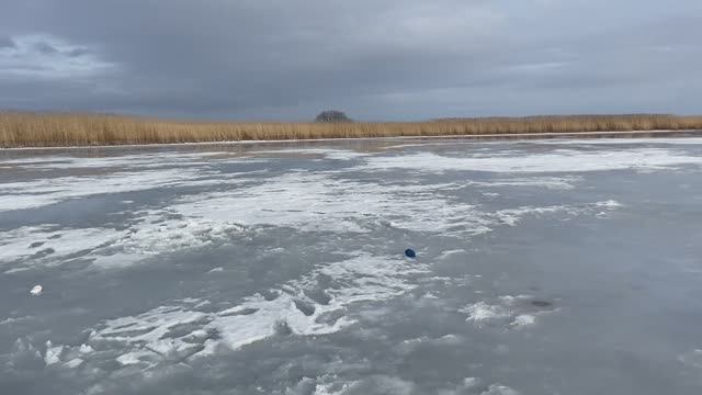 Поехали на подледную рыбалку и попали под дождь