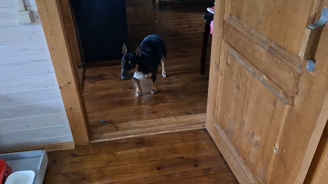 Моросит пол дня. Листок меднится. Собачки)))