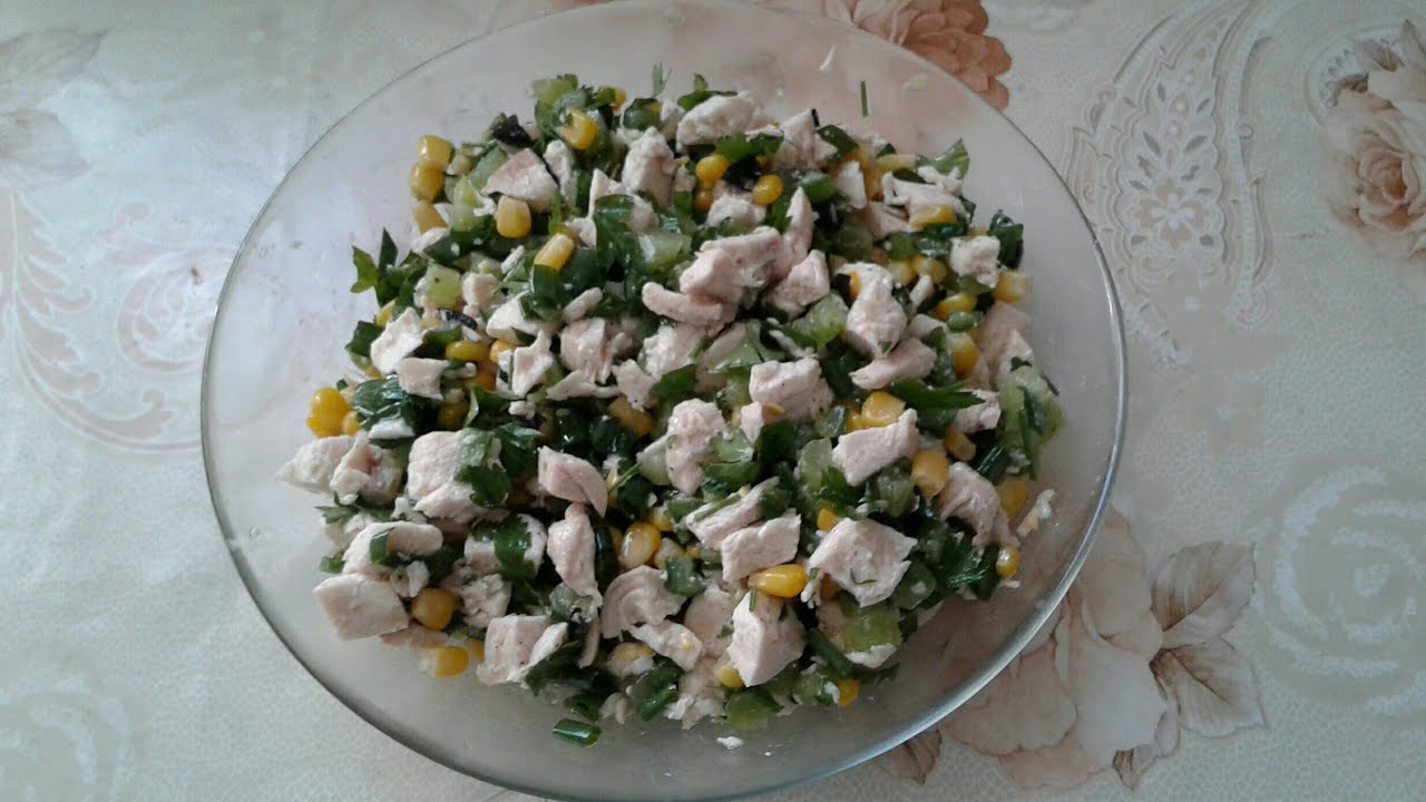 Салат из куриной грудки кукурузы и огурцов кулинарный рецепт