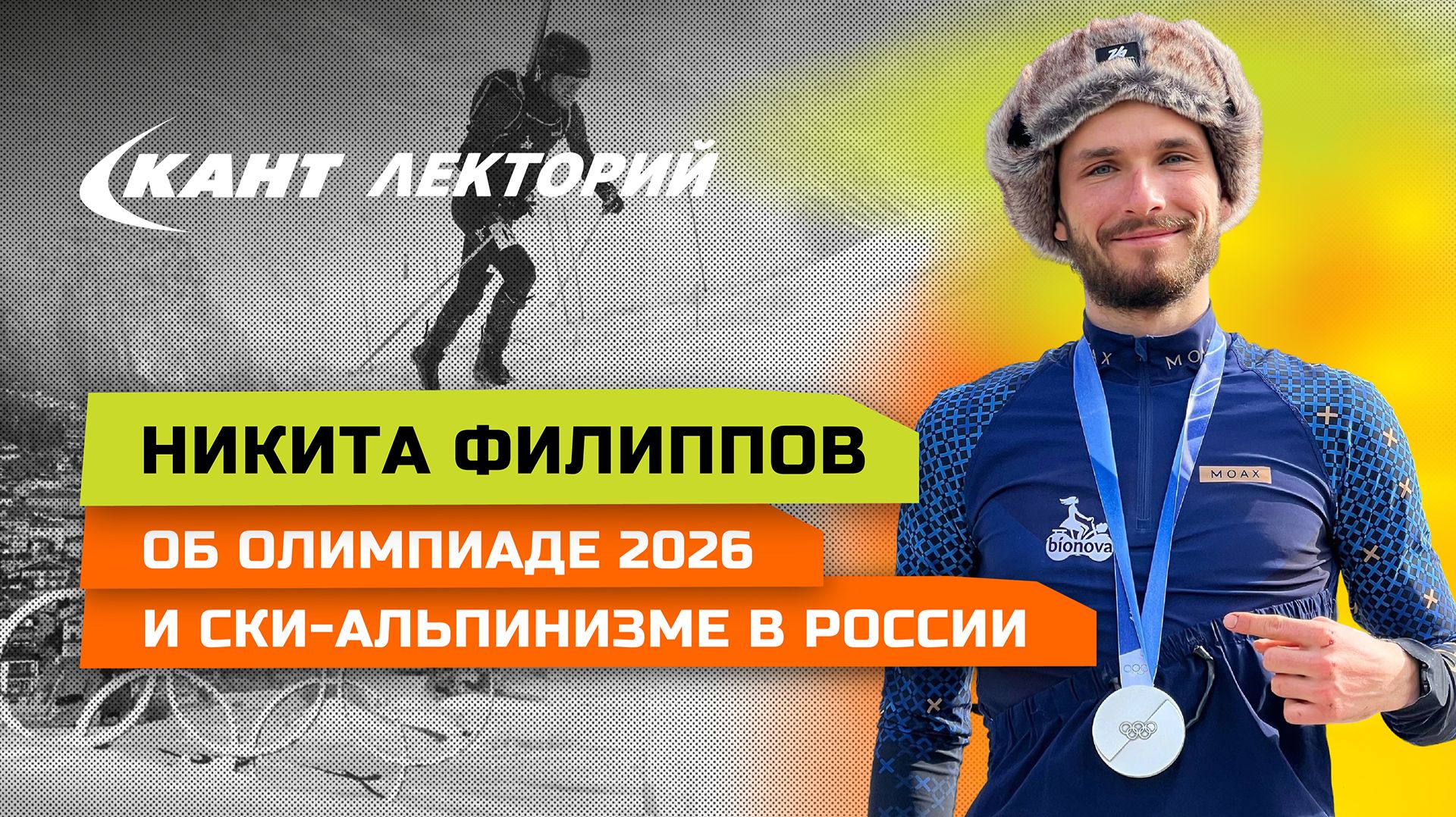 Новость-пушка! 11 марта в 19:30 приглашаем всех в московский «Кант Лекторий» на эксклюзивную встречу с серебряным призером Олимпиады 2026, ски-альпинистом Никитой Филипповым. Никита Филиппов успел попробовать себя в лыжах, биатлоне и ски-альпинизме. Именно последняя дисциплина сделала его серебряным медалистом Олимпиады 2026. У Никиты очень много достижений: 25-кратный чемпион России по ски-альпинизму и скайраннингу, бронзовый призер в спринте на французском этапе Кубка мира по ски-альпинизму и чемпион Европы по ски-альпинизму в спринте. Никита вырос и провёл всё детство на Камчатке. Красивые виды природы, вулканы и гористая местность явно располагали к занятиям именно таким необычным видом спорта. На встрече обсудим, как Никита попал в ски-альпинизм, тяжело ли было готовиться к олимпиаде и как проходил отбор. Как проходят тренировки на Камчатке, и как развивается этот регион в плане спорта. А также специальным гостем этого вечера будет Варвара Прохорова, которая как раз комментировала на Okko призовой забег Никиты. Варвара Прохорова – Мастер Спорта по лыжным гонкам, бронзовый призёр серии марафонов Russialoppet(сезон 2018), многократный победитель и призёр российских и международных соревнований, чемпионка мира по гонкам с препятствиями, победитель и призёр чемпионата и кубков России по ски-альпинизму. Для тех, кто придет лично, разыграем специальные подарочки от Никиты. Ждём всех на встречу по адресу: Москва, Электролитный проезд, д. 7, корп. 2, ресторан «Шале». Прямой эфир лекции будет проходить на нашем YouTube-канале, ВКонтакте или Рутубе. ---------------------------- Бонус для участников лекции: скидка 10% на все товары из новых коллекций и доп скидка 5% на sale во всех магазинах Кант по промокоду «москвалекторий». Условия скидки: - Скидка действует в интернет-магазине www.kant.ru и во всех оффлайн магазинах. - Период действия: 11.03.26 19.30 - 13.03.26 19.30 - Скидка 5% суммируется с ценниками Sale. - Скидки не суммируются с ДК и не распространяются на: Лавинку, Газовые баллоны, Petzl, Leatherman, Stanley, Thule, Seba, Cool zone, Burton step on, Globber, Suunto, Fischer Carbon lite RCS. - Чтобы воспользоваться скидкой, нужно назвать промокод «кантлекторий» на кассе или ввести его при оформлении заказа в интернет-магазине. ---------------------------- Магазин Кант https://www.kant.ru/ Youtube-канал «Кант» https://www.youtube.com/@TVKANT Rutube-канал «Кант» https://rutube.ru/channel/38824916/ VK Video https://vkvideo.ru/@kant VK группа «Кант» https://vk.com/kant Канал «Кант» в Telegram - https://t.me/kantsport «Кант Лекторий» (вся информация о лекциях и мероприятиях в разных городах) https://events.kant.ru Беговой клуб «Кант» https://t.me/Mountain_kant ---------------------------- В видео возможно упоминание Инстаграм и Фейсбук. Деятельность компании Meta Platforms Inc., которой принадлежит Инстаграм / Фейсбук, запрещена на территории РФ в части реализации данных социальных сетей на основании осуществления ею экстремистской деятельности.