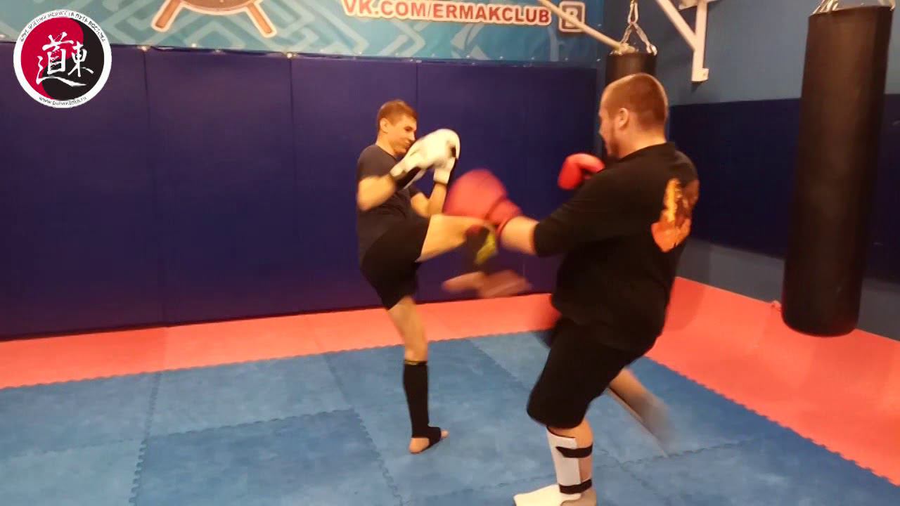 Ушу-саньда. Отработка ударов ногами.