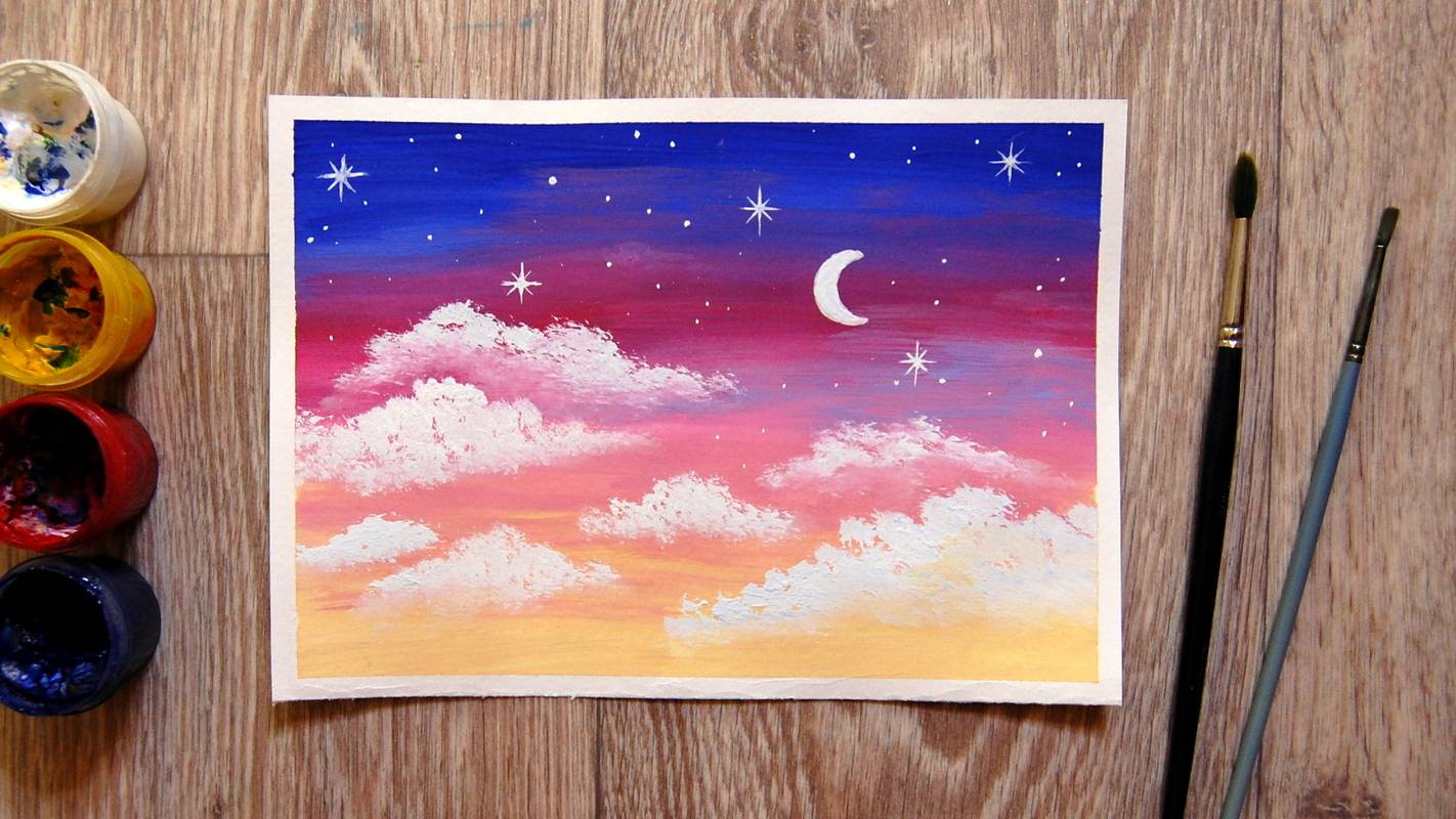 Как нарисовать звёздное небо гуашью