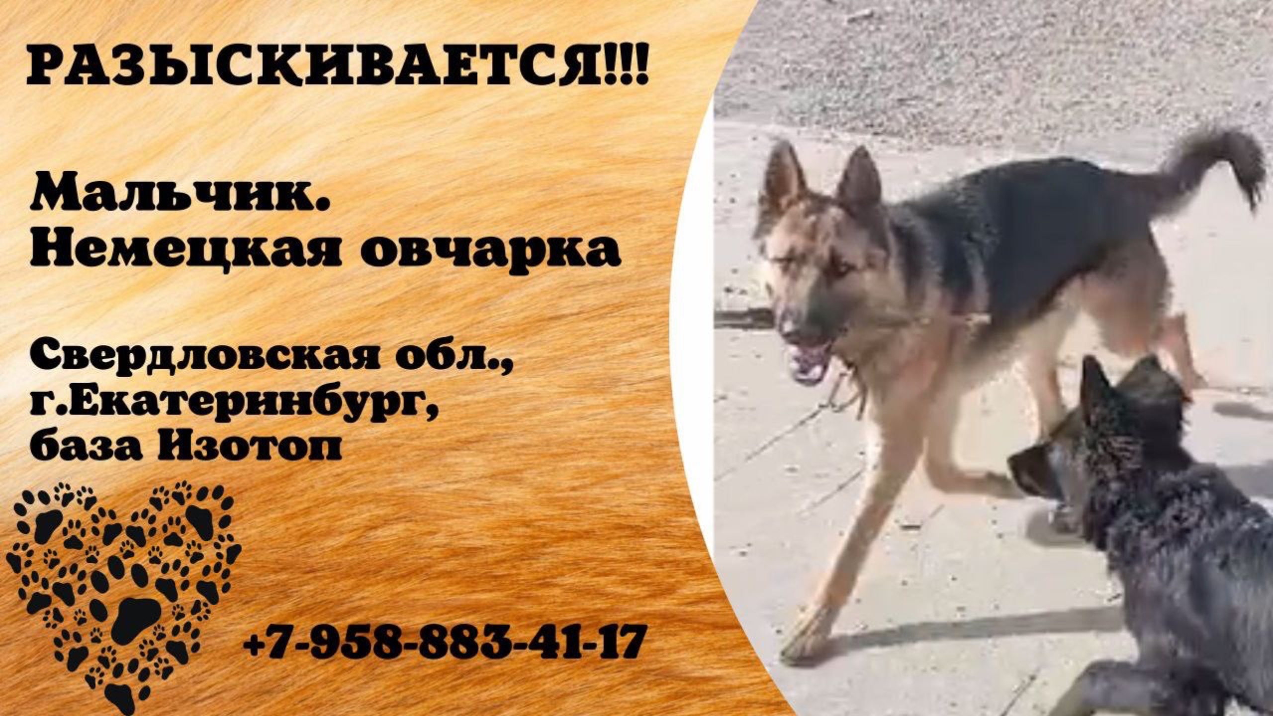 Пропала собака! Мальчик. Немецкая овчарка. Свердловская обл., г.Екатеринбург.