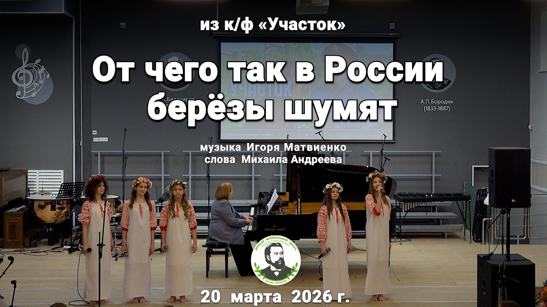 «От чего так в России берёзы шумят» из к/ф «Участок» музыка Игоря Матвиенко слова Михаила Андреева Исполняет ансамбль «Акварель» С концерта «Звучит музыка из кинофильмов» --- 20 марта 2026 г. ДМШ им. М.П. Мусоргского г. Зеленоград