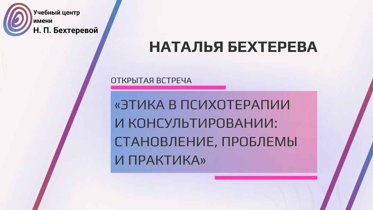Наталья Бехтерева - преподаватель курса «Этика в психотерапии и консультировании: становление, проблемы и практика» (Психиатр, психотерапевт, психолог, председатель Этического комитета РПА руководитель семейного проекта музея-усадьбы «Тихий Берег». Занимается научной и практической деятельностью в области психофизиологии, психотерапии). Подробнее о программе https://psy.education/etika-v-psihoterapii-i-konsultirovanii-stanovlenie-problemy-i-praktika/ Форма проведения дистанционная Учебный Центр имени Натальи Петровны Бехтеревой. https://psy.education/ Акцент на лучшем в российском образовании. Обучающие программы по психологии и психотерапии: программы повышения квалификации, программы переподготовки для специалистов, сертификационные программы и циклы. Учебный Центр в ВК: https://vk.com/psy.education.work.market Учебный Центр в Телеграм: https://t.me/psy_education_bekhterevoi