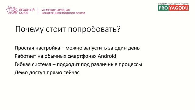 Система учета сбора урожая для ягодной отрасли Конференция Ягодного Союза