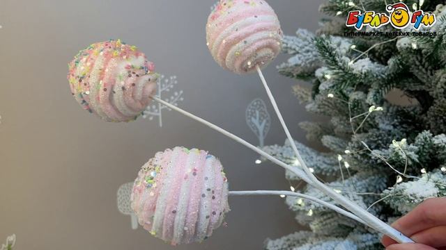 333066 Украшение декоративное Ветка-леденец с разноцветной посыпкой розовая 50см