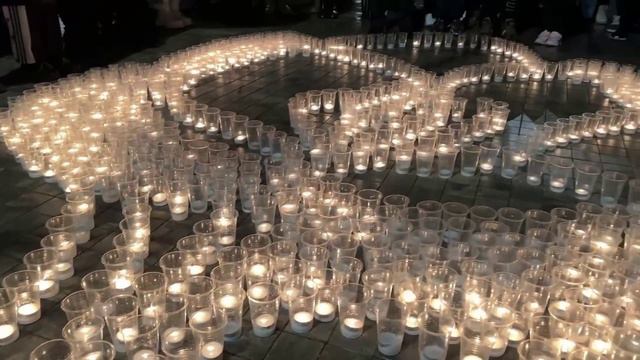 Цветок Крокуса из сотен свечей, как символ нашего единства у стихийного мемориала в парке Истры