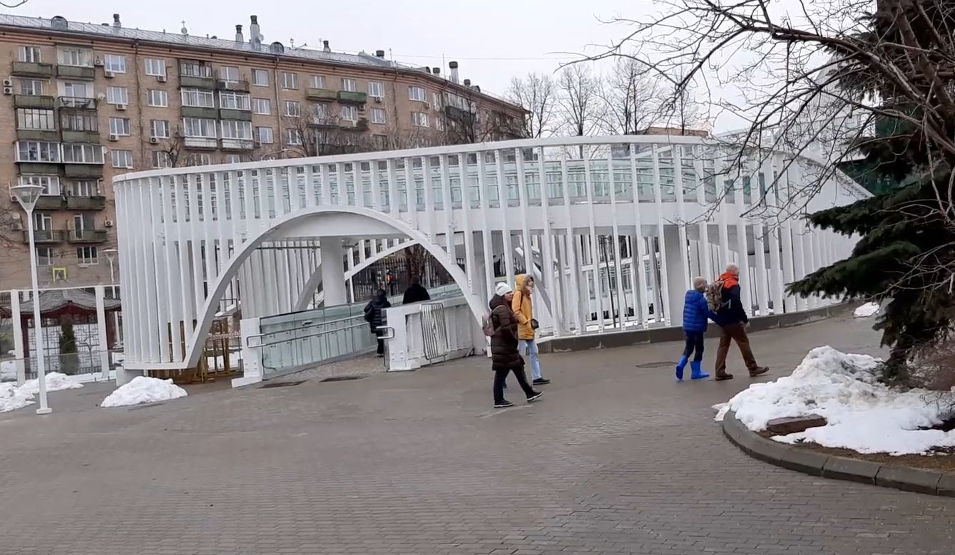 На днях побывал в Московском зоопарке на Красной Пресне. Порадовал новый модерновый пешеходный мост через улицу Большая Грузинская, который ведёт из старой территории в новую. Начало апреля 2022 года. См. видео: