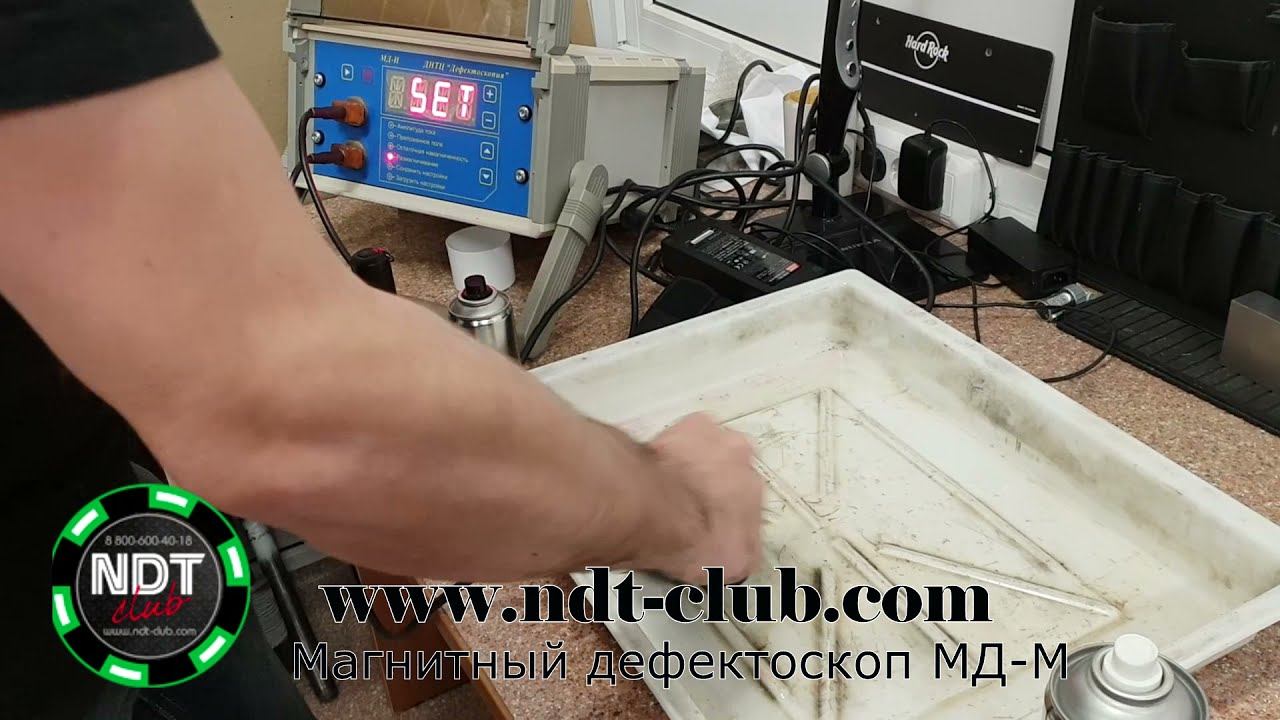 МД-М применение магнитопорошкового дефектоскопа для выявления поверхностных трещин на детали. МД-М модульный дефектоскоп, на видео используется один из модулей МД-И. Подробная информация о дефектоскопе МД-М на нашем сайте https://www.ndt-club.com/product-40-md-m-magnitoporoshkovii-defektoskop.htm
