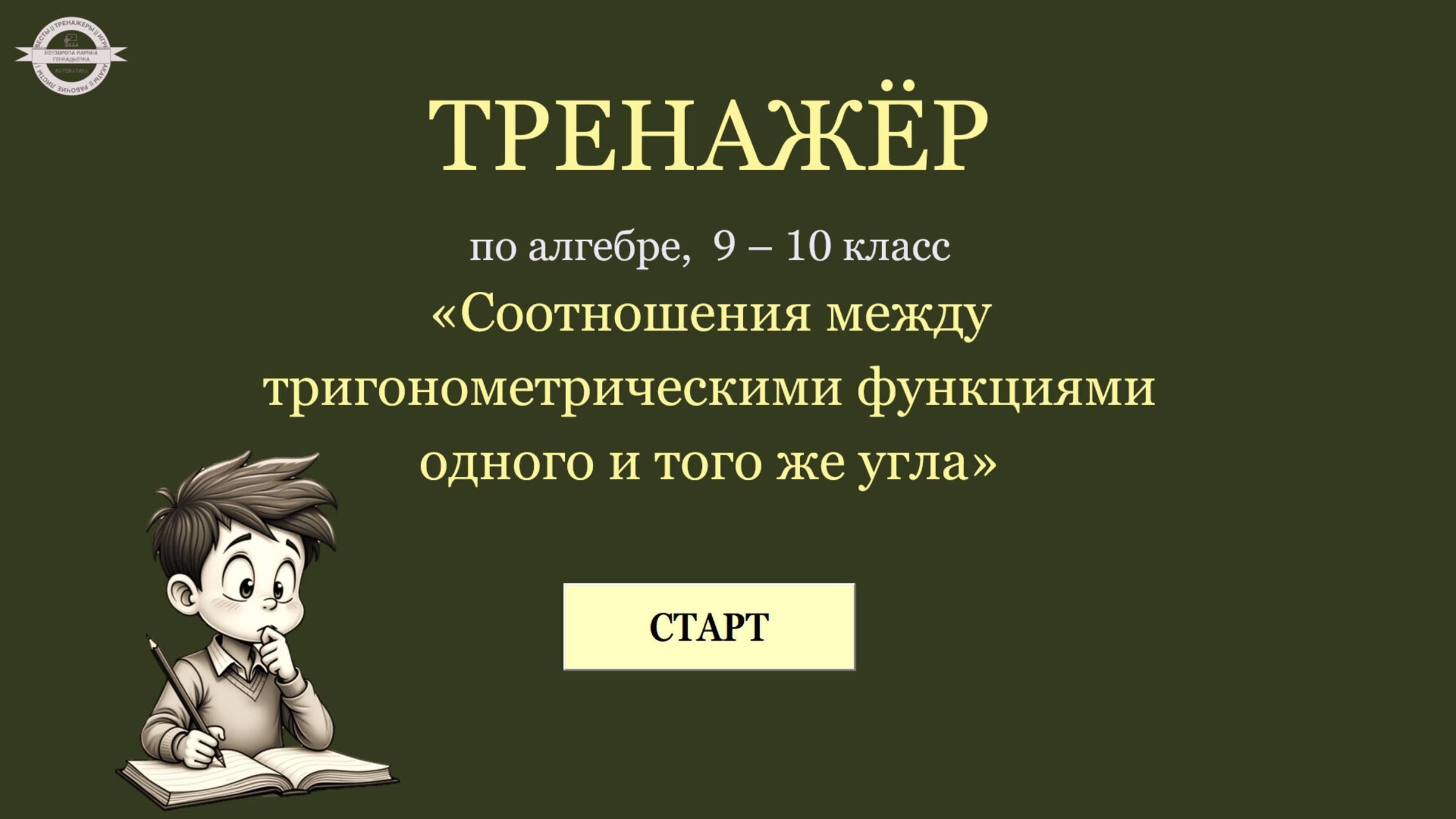 Тренажер "Соотношения между тригонометрическими функциями одного и того же угла", 9-10 класс