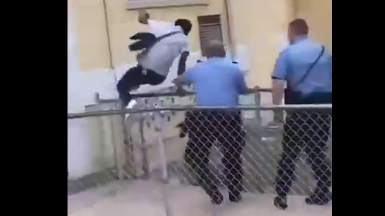 Подросток убегает от полиции выполняя при этом гимнастические элементы. #побег #полиция #приколы