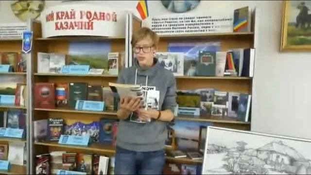 Читает кадет казачьего класса МОУ СШ № 110, читатель библиотеки-филиала № 17 им. М. А. Шолохова (Волгоград) Андрей Горбунов.