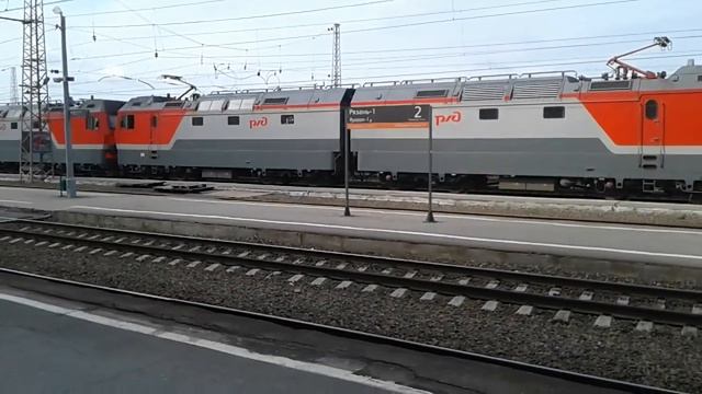 Сплотка из электровозов 2ЭС6 прибывает на вкз. Рязань-1, МЖД, 25.07.2019