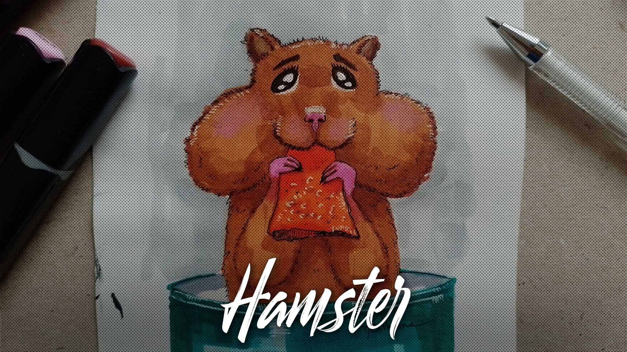 Рисую маркерами touch хомячка. Также использую гелевые ручки белую и черную. И карандаш розовый для румян. #тренды #рисунок #ест