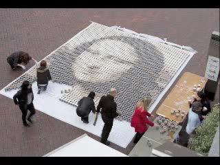 Точная копия Моны Лизы. Использовано 4 000 чашек кофе. Сидней, Австралия