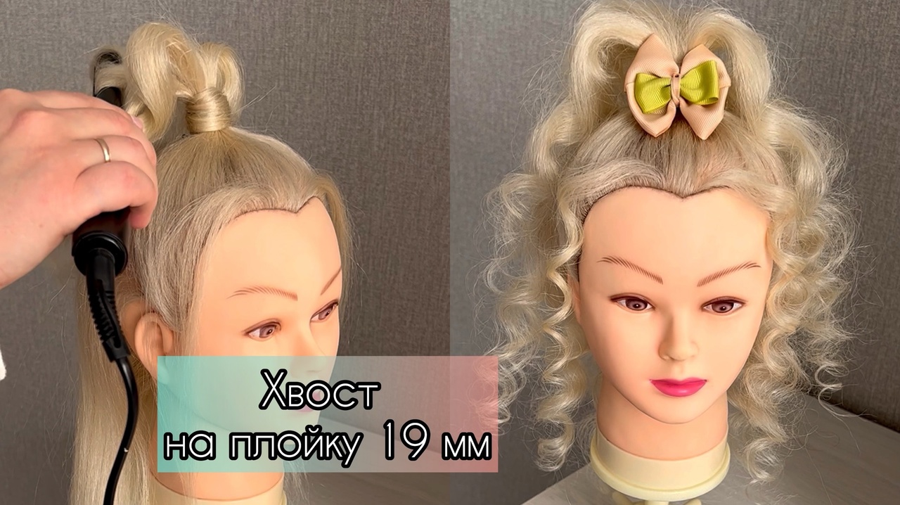 Пышный ХВОСТ на плойку 19 мм диаметром. Прическа для девочек в школу или детский сад