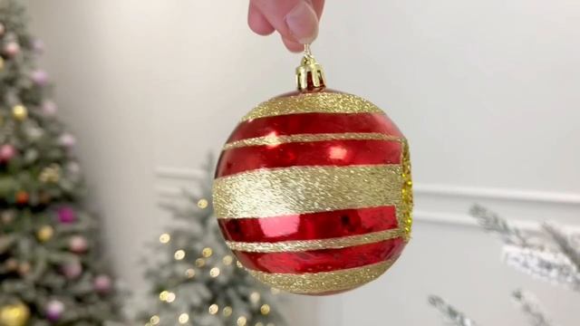 Набор пластиковых шаров РЕТРО С ИСКОРКАМИ, красный и сосновый зелёный, 80 мм, 025804-набор