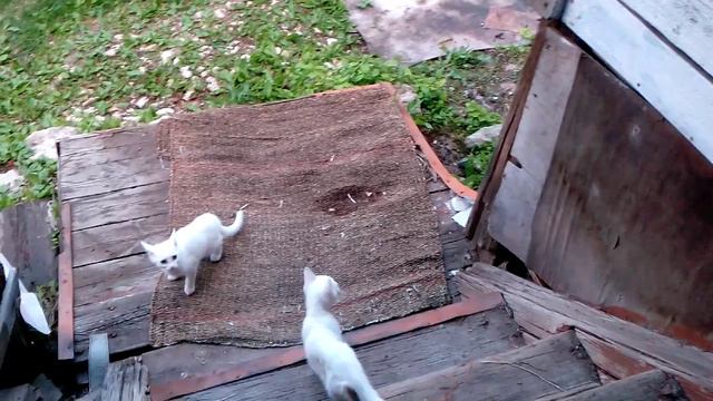 Первая прогулка котят во дворе на Даче