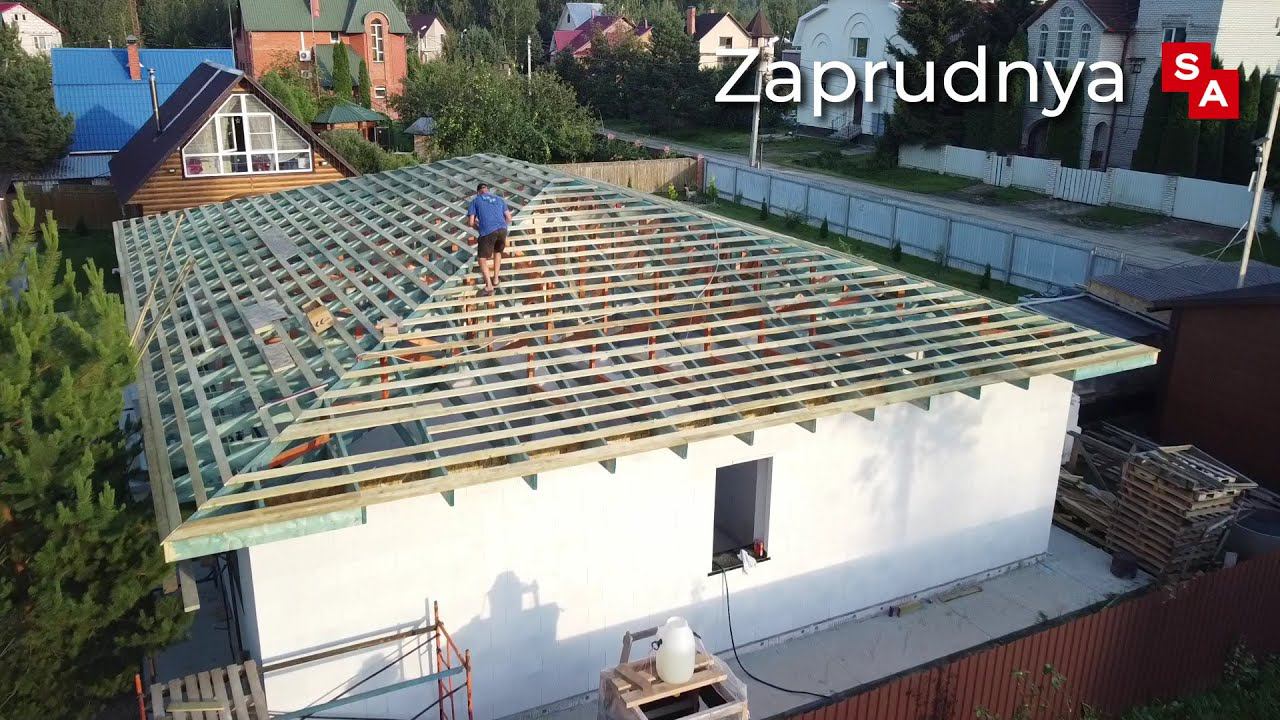 Монтируем кровлю на стропильные фермы в доме Саввино SA Талдомский район
