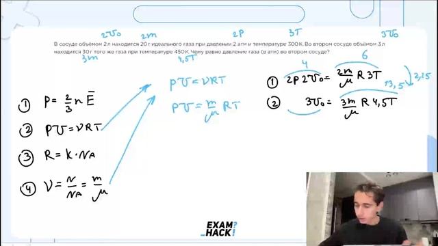 В сосуде объёмом 2 л находится 20 г идеального газа при давлении 2 атм и температуре 300 К - №23827