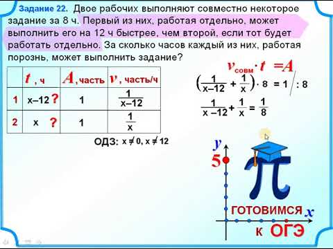 8 класс. Дробно-рациональное уравнение. Двое рабочих выполняют совместно некоторое задание за 8 ч. Первый из них, работая отдельно, может выполнить его на 12 ч быстрее, чем второй, если тот будет работать отдельно. За сколько часов каждый из них, работая порознь, может выполнить задание?