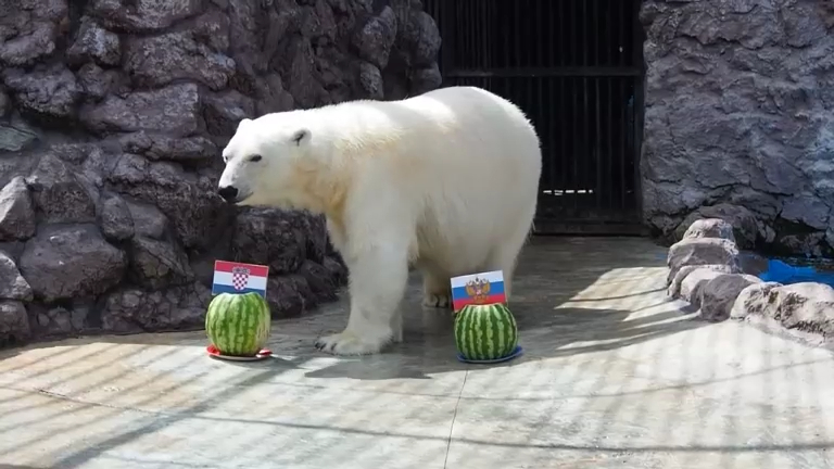Медведица Аврора, живущая в красноярском парке флоры и фауны "Роев ручей", предсказала исход матча 1/4 финала чемпионата мира по футболу 2018 года между командами России и Хорватии. #чм2018 #медведь #предсказание #футбол