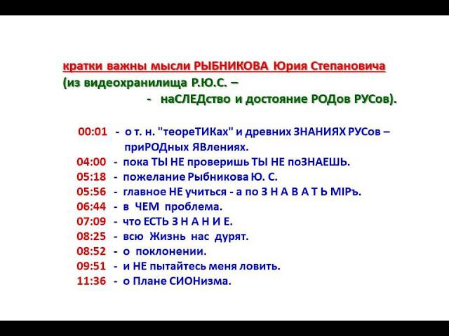 кратки важны мысли РЫБНИКОВА Ю.С. (из видеохранилища Р.Ю.С. - наСЛЕДство и достояние РОДов РУСов).