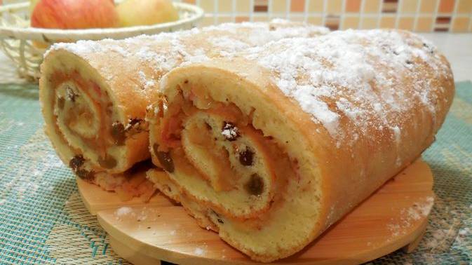 Шарлотка в виде рулета. БИСКВИТНЫЙ РУЛЕТ С ЯБЛОКАМИ