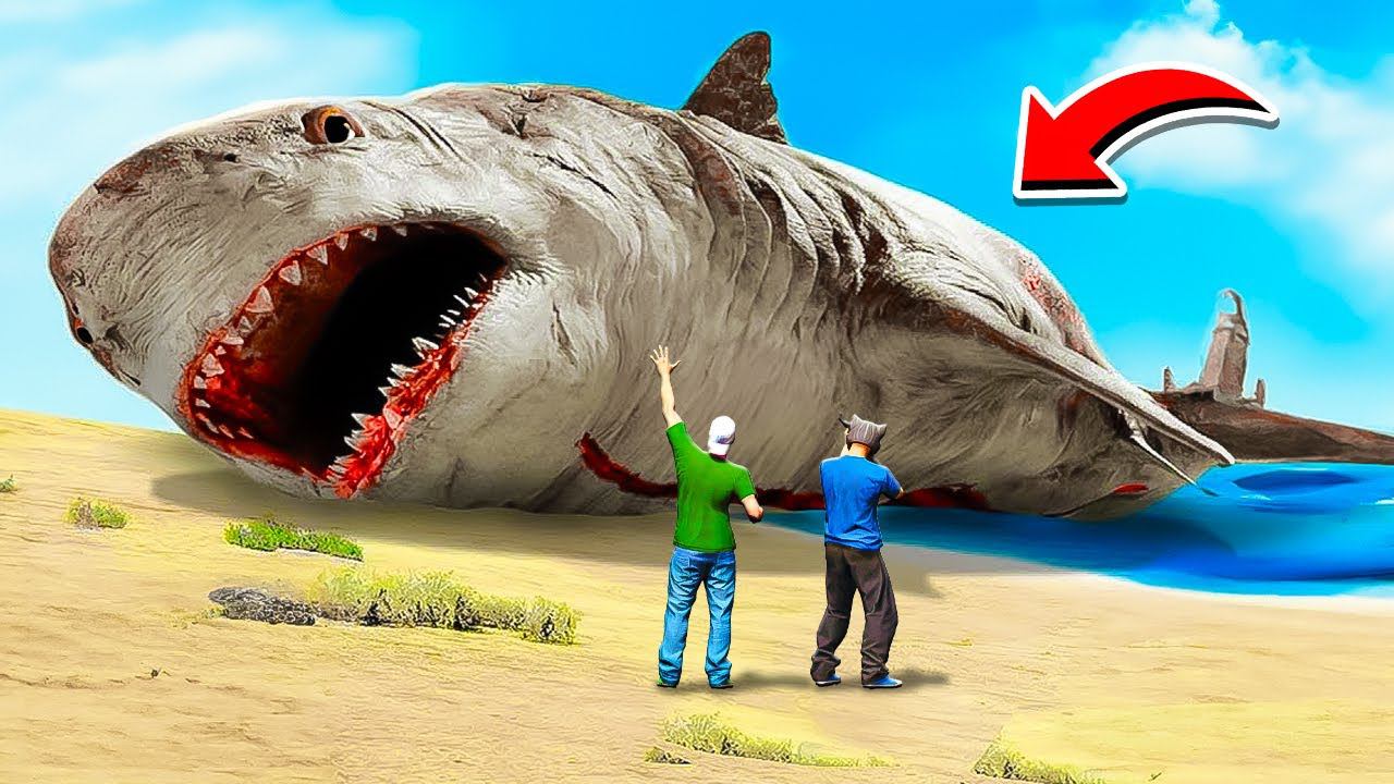 УДАЛИЛИ ВСЮ ВОДУ И НАШЛИ ОГРОМНОГО МЕГАЛОДОНА! САМАЯ БОЛЬШАЯ АКУЛА ГТА 5 МОДЫ РАЙЛЮХА