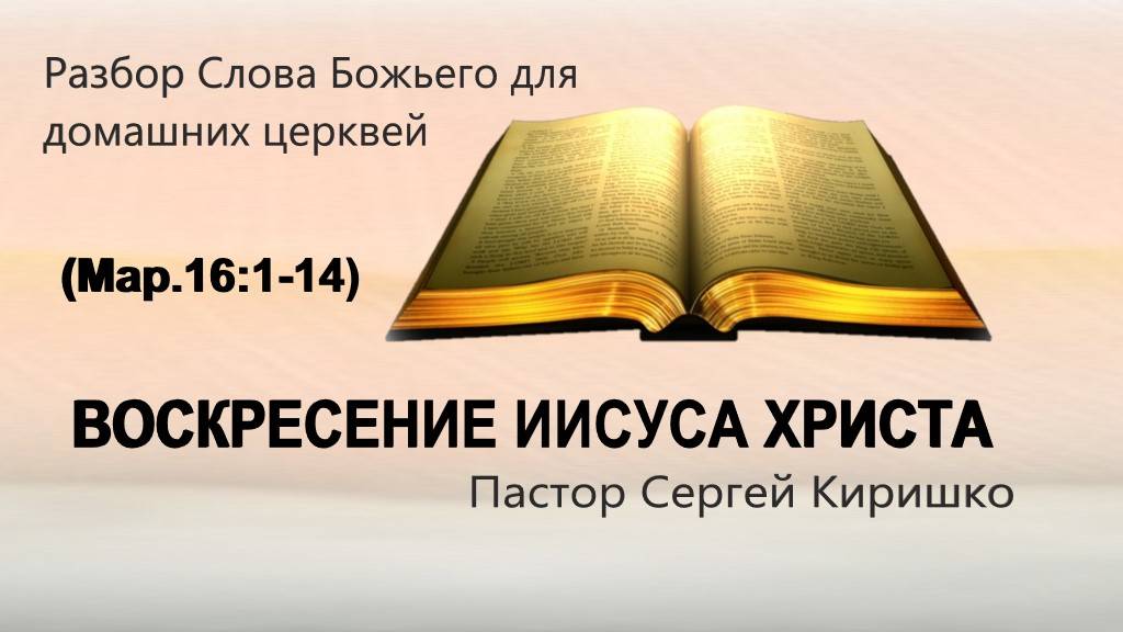 в церкви «Слово Спасения Пастор Сергей Киришко Разбор Слова Божьего (Мар.16:1-14) ВОСКРЕСЕНИЕ ИИСУСА ХРИСТА. 00:00 Приветствие. 00:55 Призыв к молитве. 04:22 О Домашней Церкви. 04:46 Тема: ВОСКРЕСЕНИЕ ИИСУСА ХРИСТА. (Мар.16:1-14) 05:10 Вопросы к разбору: 1. В какой день недели воскрес Иисус? 2. Как женщины собирались помазать Тело Иисуса в охраняемом гробу? 3. Как Бог посрамил власть смерти, власть Рима и синедриона? 4. Почему Иисус явился сперва женщинам по Своем воскресении? 5. Чем Ангел ободряет и вдохновляет смелых женщин? 6. Какое доказательство Ангел представляет женщинам? 7. Какое задание поручает Ангел женщинам мироносицам? 8. Какая реакция учеников на пустой гроб Иисуса? 9. Что мешает людям уверовать в Благую Весть о воскресении Спасителя? 10. Какое значение имеет для меня воскресение Иисуса? 11. А кому я благовествовал о воскресении Иисуса? 06:00 (Ст.1-3). По прошествии субботы Мария Магдалина и Мария Иаковлева и Саломия купили ароматы, чтобы идти помазать Его. И весьма рано, в первый день недели, приходят ко гробу, при восходе солнца, и говорят между собою: кто отвалит нам камень от двери гроба? 08:51 (Ст.4-5). И, взглянув, видят, что камень отвален; а он был весьма велик. И, войдя во гроб, увидели юношу, сидящего на правой стороне, облеченного в белую одежду; и ужаснулись. 10:44 (Ст. 6). Он же говорит им: не ужасайтесь. Иисуса ищете Назарянина, распятого; Он воскрес, Его нет здесь. Вот место, где Он был положен. 12:07 (Ст.7). Но идите, скажите ученикам Его и Петру, что Он предваряет вас в Галилее; там Его увидите, как Он сказал вам. 14:00 (Ст.8). И, выйдя, побежали от гроба; их объял трепет и ужас, и никому ничего не сказали, потому что боялись. 14:59 (Ст.9). Воскреснув рано в первый день недели, Иисус явился сперва Марии Магдалине, из которой изгнал семь бесов. 16:03 (Ст.10-11). Она пошла и возвестила бывшим с Ним, плачущим и рыдающим; но они, услышав, что Он жив и она видела Его, — не поверили. 17:37 (Ст.12-13). После сего явился в ином образе двум из них на дороге, когда они шли в селение. И те, возвратившись, возвестили прочим; но и им не поверили. 18:51 (Ст.14). Наконец, явился самим одиннадцати, возлежавшим на вечери, и упрекал их за неверие и жестокосердие, что видевшим Его воскресшего не поверили. 21:01 Молитва 22:16 Титры // реквизиты ______________________________________________________________________ Также вы можете нас найти на этих источниках: ВКонтакте https://vk.com/slovospaseniya САЙТ https://slovospaseniya.ru Telegram Церкви https://t.me/+62QEpL84_qRjMTYy Telegram Пастора https://t.me/+kXyTjowJJhZkZWIy YouTube https://www.youtube.com/@SlovoSpaseniya Слово Спасения Worship https://www.youtube.com/@C_C_Worship YouthWS https://www.youtube.com/@YouthWS RUTUBE https://rutube.ru/channel/39535029/ ______________________________________________________________________ Богослужения проходят • каждое воскресенье в 11:00 в церкви по адресу Москва, ул.Цимлянская 3к2 https://yandex.ru/maps/-/CHQwn0IK • каждый четверг в 19:00 в церкви по адресу Москва, ул.Фабрициуса 31А https://yandex.ru/maps/-/CDcVALkT • ежедневно в 8:00 трансляция утренней молитвы ______________________________________________________________________ Пожертвования через QR-код: https://inlnk.ru/VoNGNY Реквизиты для пожертвования: Получатель: Местная религиозная организация Церковь христиан веры евангельской «Слово Спасения» ИНН: 7730125083 КПП: 773301001 БИК: 044525225 Расчётный счёт: 40703810238170001943 Корр. счёт: 30101810400000000225 Московский банк ОАО «Сбербанк России» г. Москва ______________________________________________________________________ Найти нас можно по тегам #церковь #слово #спасения #церковь #москва #молитвенное #служение #богослужение #прославление #поклонение #москва _______________________________