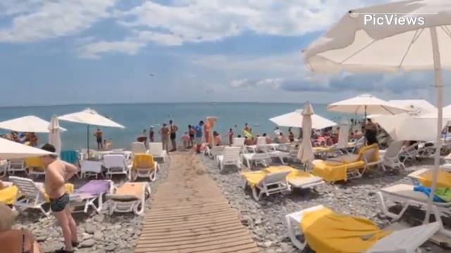 Сочи Лазаревское сегодня 8 июля 2024. Пляж Багратион. Какая сейчас обстановка на пляже море и погода