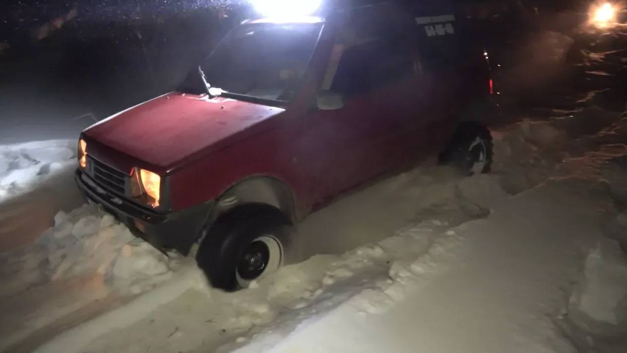 На злой Оке по сугробам за Нивами и УАЗами? Квадроцикл с крышей. Бездорожье, оффроад, сугробы