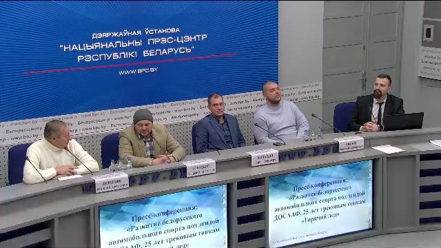 Лапицкий Сергей Сергеевич - директор специализированной детско-юношеской спортивно-технической школы по автомотоспорту ДОСААФ Погоцкий Андрей Ольгертович - первый чемпион трековых гонок Шевченко Анатолий Алексеевич - основатель гонок "Горячий лед", Иванов Никита Владимирович - победитель сезона 2023 года по трековым автомобильным гонкам Задать вопрос: vopros@bpc.by Вся самая актуальная и оперативная информация о пресс-мероприятиях Национального пресс-центра Республики Беларусь будет публиковаться на нашем телеграм-канале. Подписывайтесь на нас: https://t.me/s/belpresscenter